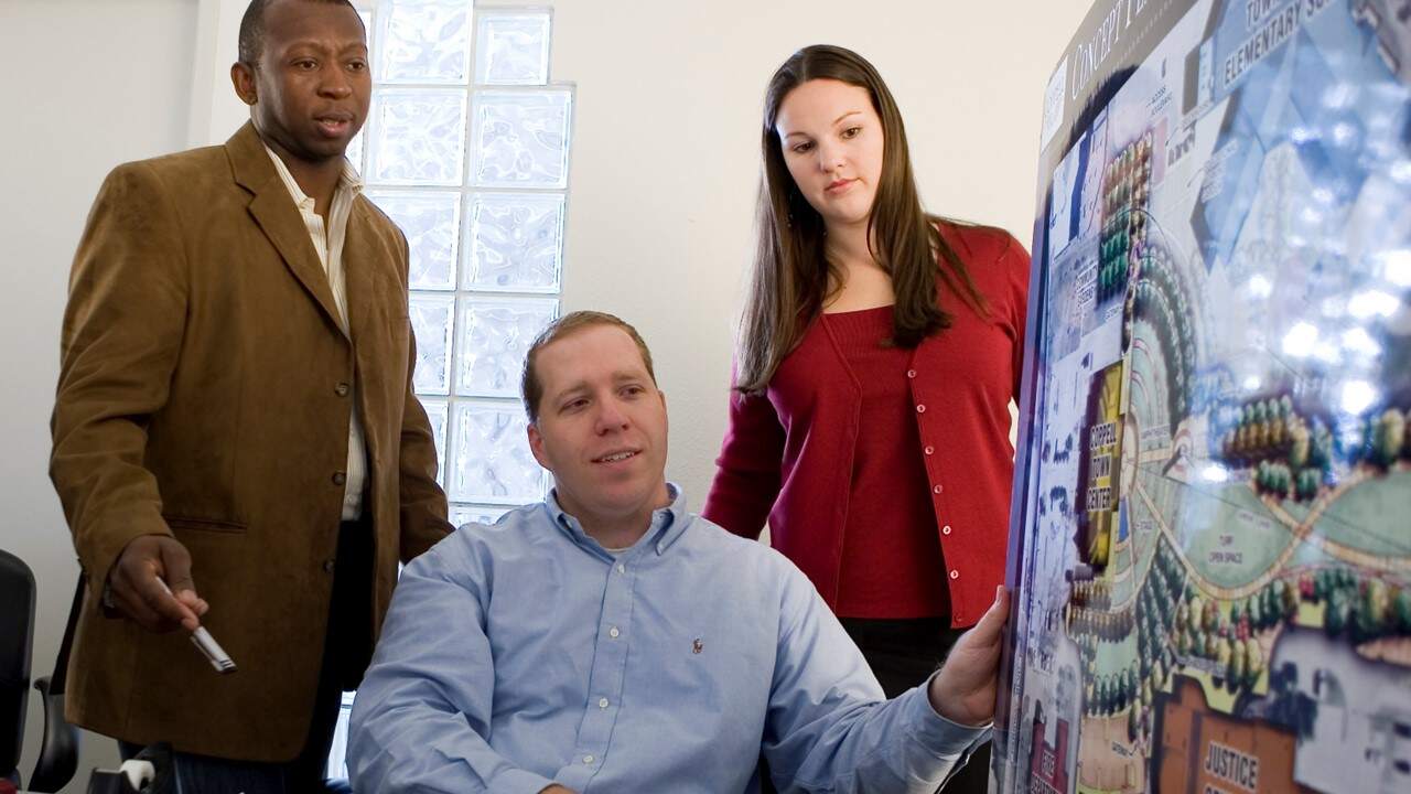 Jessica Baker Daily collaborating with Lenny Hughes and Chad Gardiner in 2006 on a Halff project.