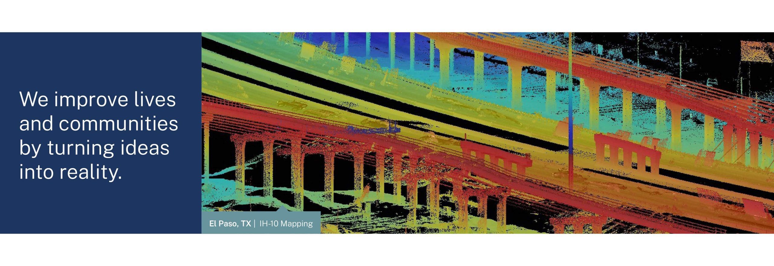 The IH-10 mapping project for the El Paso District provided layered data to show the integrity and composure of new bridge structures. Halff collected data across three roadway sections and an interchange. The final product was a vectorized lidar data map created from aerial mapping, mobile and terrestrial lidar, and conventional surveying.