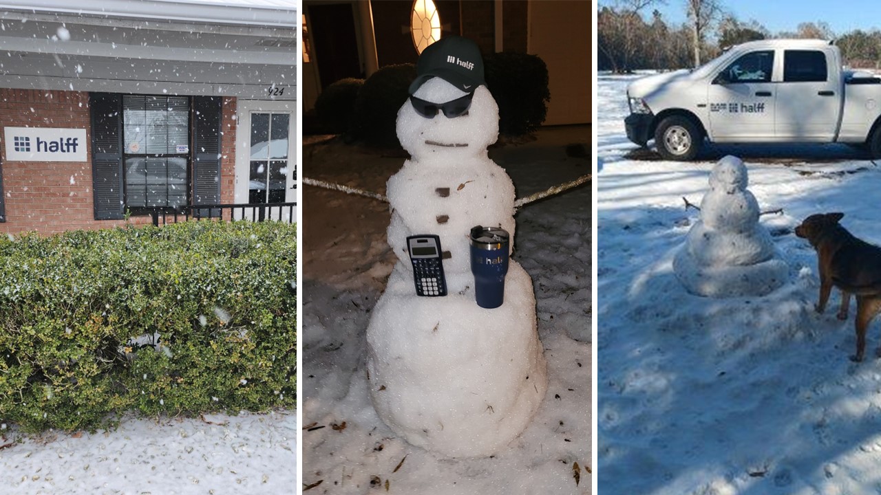 Halff offices in Florida and Louisiana experienced a surprising winter wonderland and took full advantage of the snow to make countless snowmen.