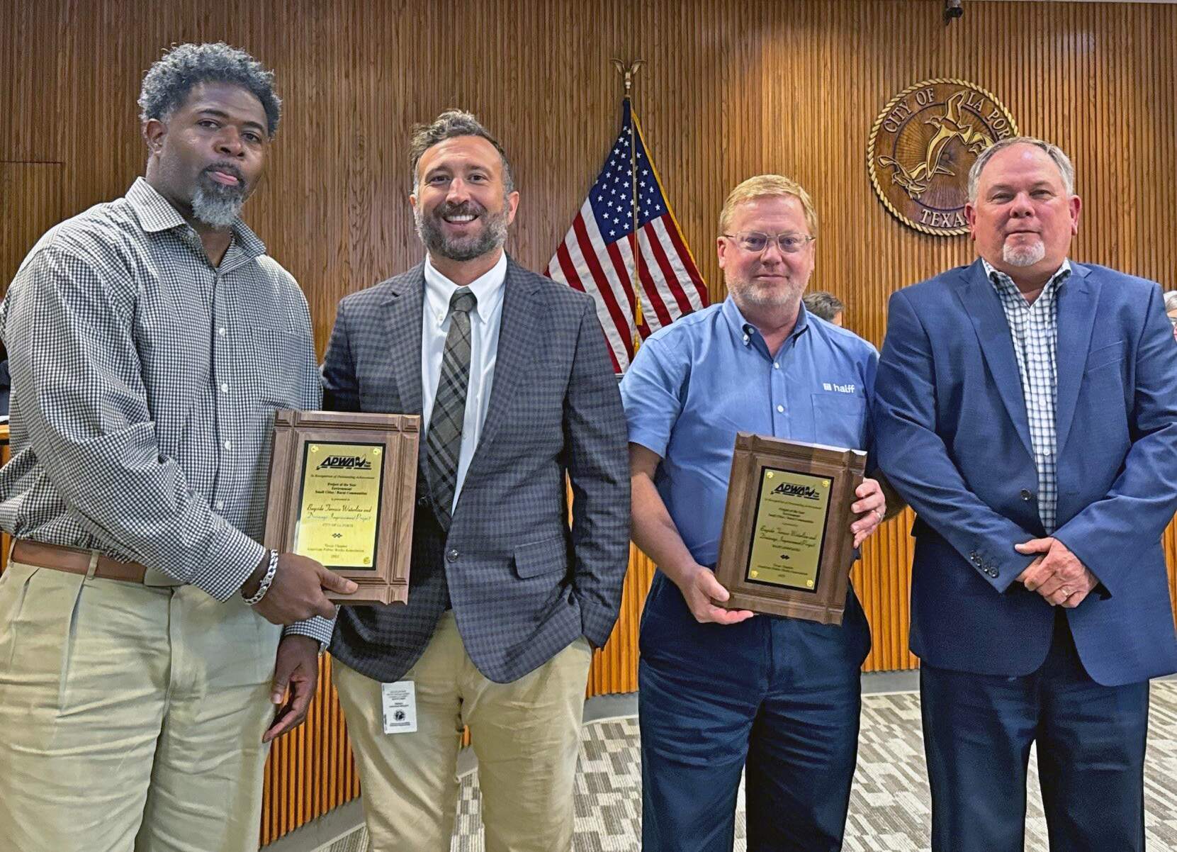 The City of La Porte’s Director of Public Works Ray Mayo presented the award to Halff Team Leader Jim Bielstein during the City Council’s Drainage Committee Meeting on July 14.
