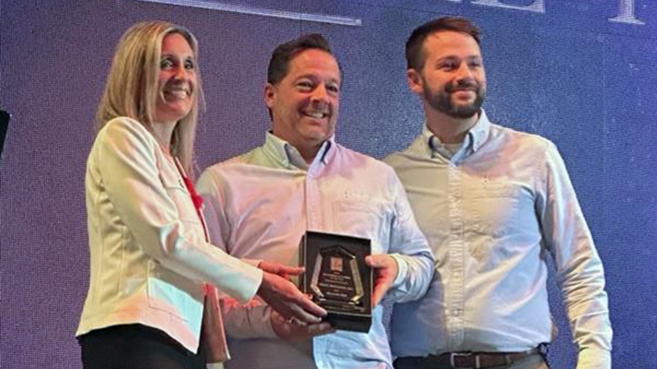 Halff Senior Project Manager Dirk Thibodaux (center) and Bentonville Operations Manager Patrick Foy (right) accepted the award from Mayor Stephanie Orman (left) at the City of Bentonville’s State of the City and Community Recognition Celebration.