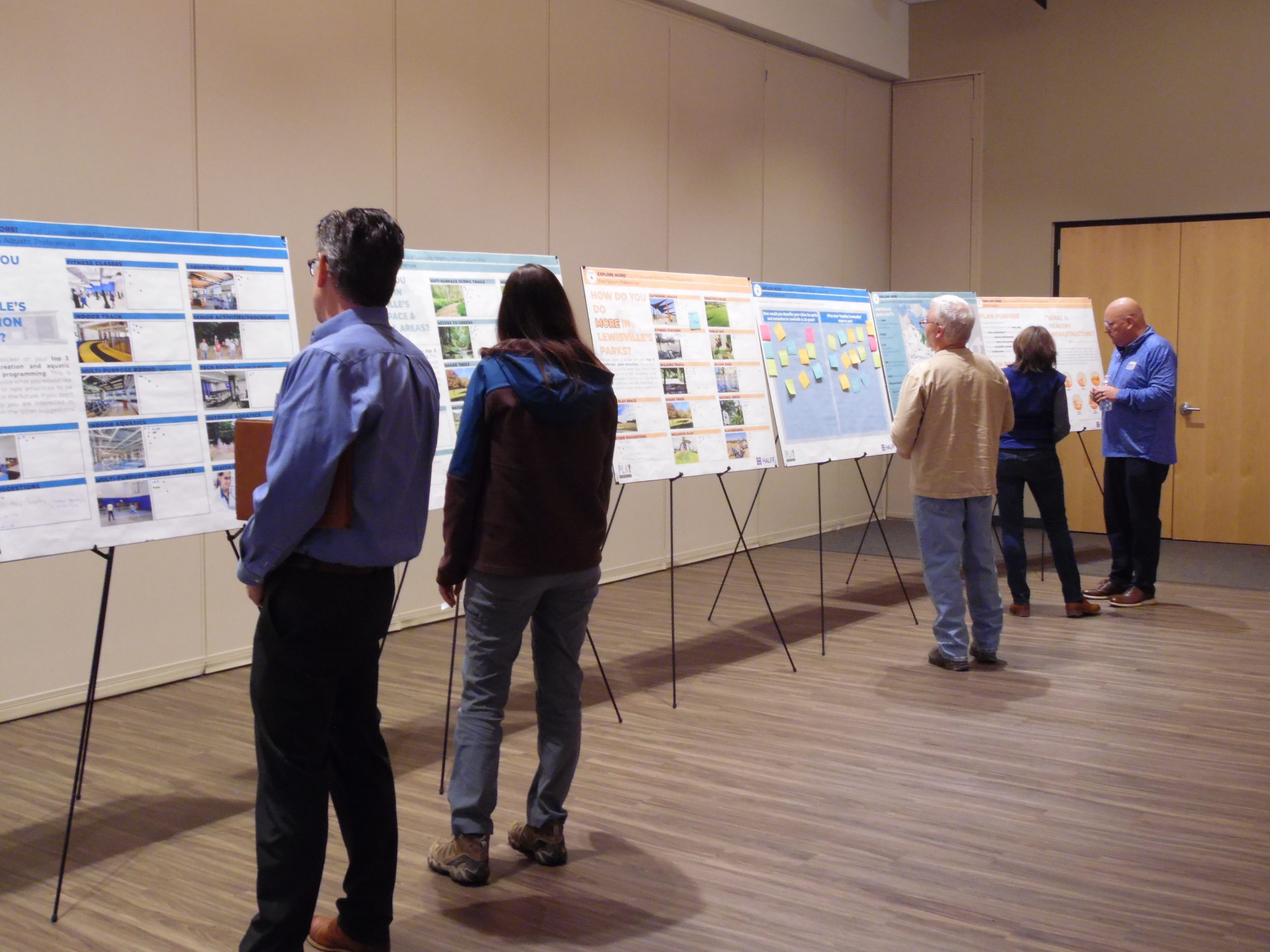 Community members review the visioning plan from Explore More Lewisville.