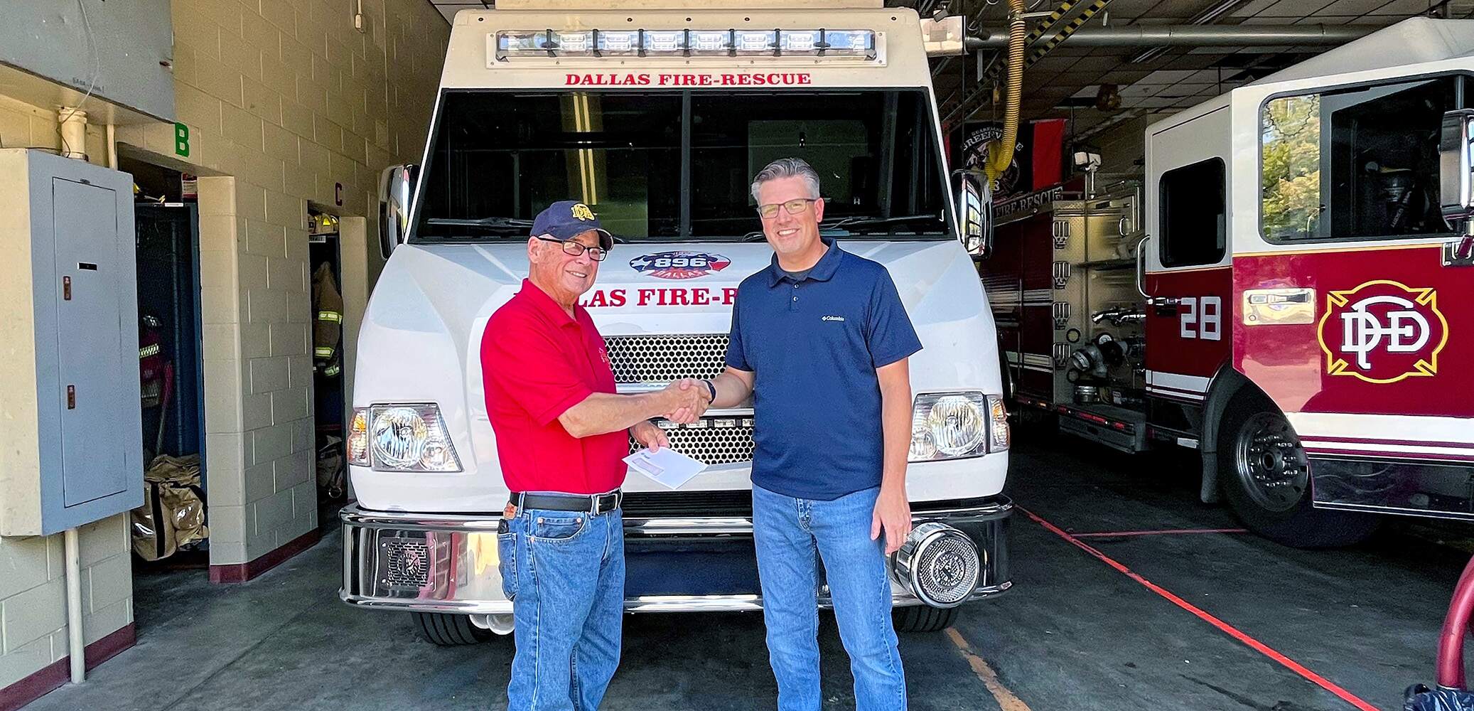 Keith Courson from the Richardson office delivered a $1,000 HCI donation to Box 4 Fire Buff Association, a nonprofit that offers rehabilitation services to the Dallas Fire Rescue Department and departments in surrounding cities.