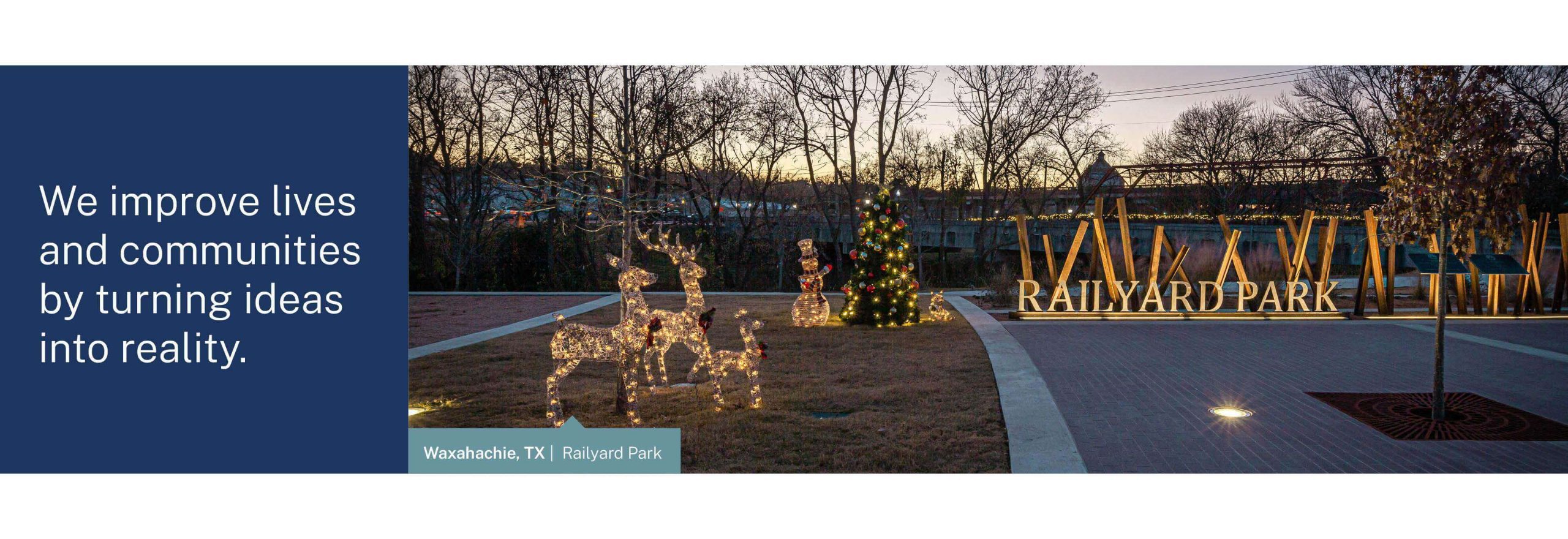 Railyard Park is a 1.2-acre multi-feature park and amphitheater neighboring the historic downtown Waxahachie. It has helped revitalize the downtown area, attracting people for a variety of events year-round. This award-winning resilient park and its facilities are also uniquely designed to withstand flooding.
