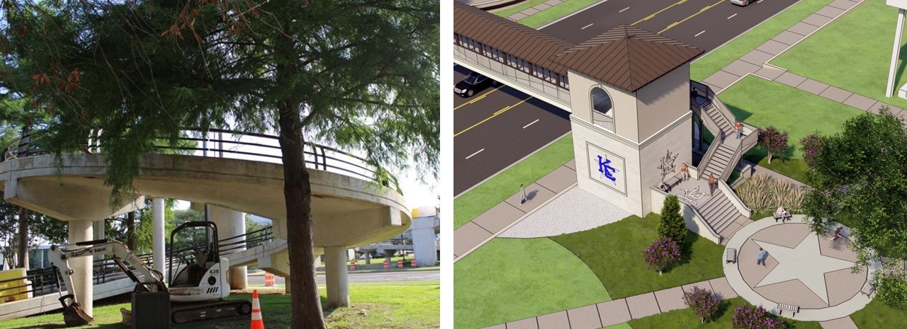 Spiral ramp and updated stairway design comparison at Kilgore College Pedestrian Bridge.