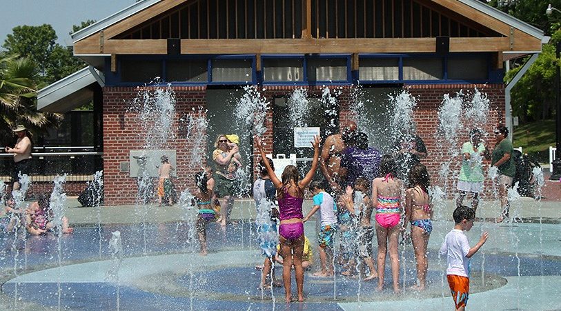 An expanded interactive water-play area provides a fun way for children to cool off.