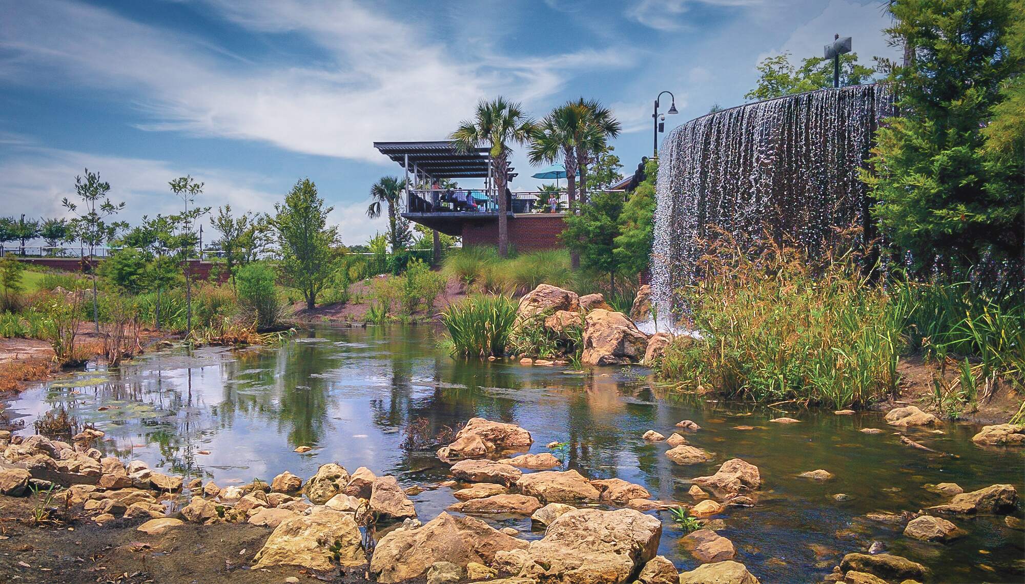 The Cascades Park design produced a unique new stormwater management system that emulates the original St. Augustine Branch stream bed, creating a healthy, sustainable stream ecology with re-vegetated stream banks that contribute to the treatment process as water flows throughout the site.