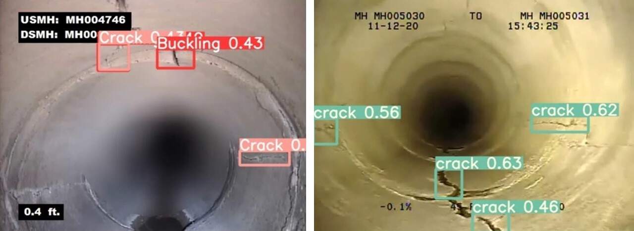 Halff worked to evaluate and implement various technological enhancements, including the application of several AI solutions. To enhance the City’s Storm Drain Rehabilitation Program (SDRP), Halff developed a deep learning object detection model to recognize critical pipe defects. This model leveraged the City’s previously collected closed-circuit television (CCTV) inspection data.