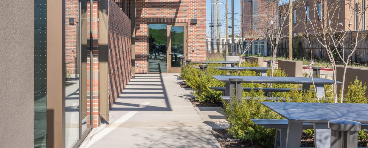 The architectural concept for the facility provides a blend of the old industrial site characteristics with a modern approach of a new facility with metal panels and sunshade devices, as well as a signature signage wall that pierces the building. The new facility houses the control room, administration offices, a conference/training center, staff facilities to accommodate field workers, warehouse facilities and tool storage. The campus incorporates Low Impact Development (LID) for a sustainable site, and LEED requirements and provisions for adjacent planned developments, notably the Old Trinity and Design District Special Purpose District.